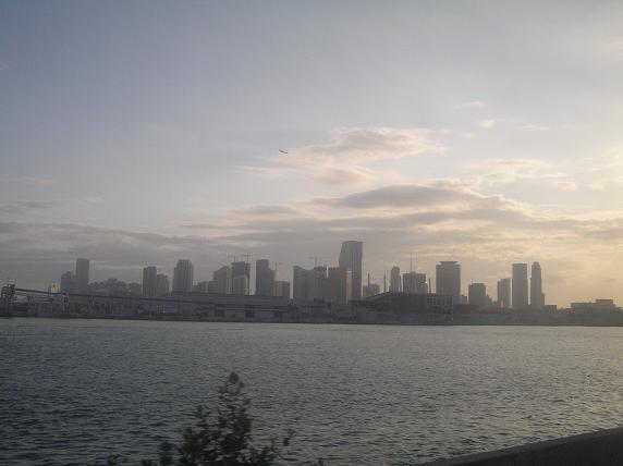 泊まったホステルのロビー 俺の後ろで写真から逃げるように写るおばあさんは、ここのホステルに年単位の長期スパンで滞在し 次から次へとホテルに来て、また去ってゆく旅する若者達とロビーで交わり色々な話をする。 短い滞在だったが、俺自身も時間のある時は色々と話した。 「なんか素敵な老後の時間の過ごし方だなあ」と思ってしまう。 恐らく今もマイアミビーチのあのホテルで各国の若者達と戯れているんだろうな いつまでもそんな時間が過ぎてほしい、と願う おばあさんの為に、旅行者の為に。 Miami cityからMiami beach cityへ渡る橋の上からのMiami Downtown |